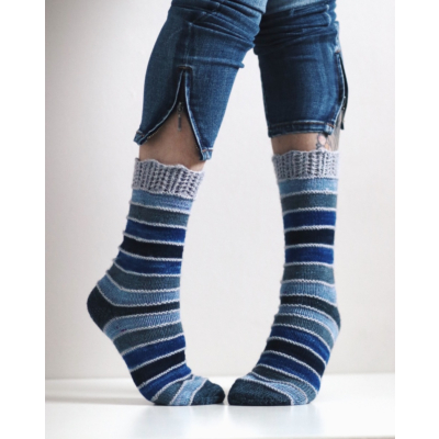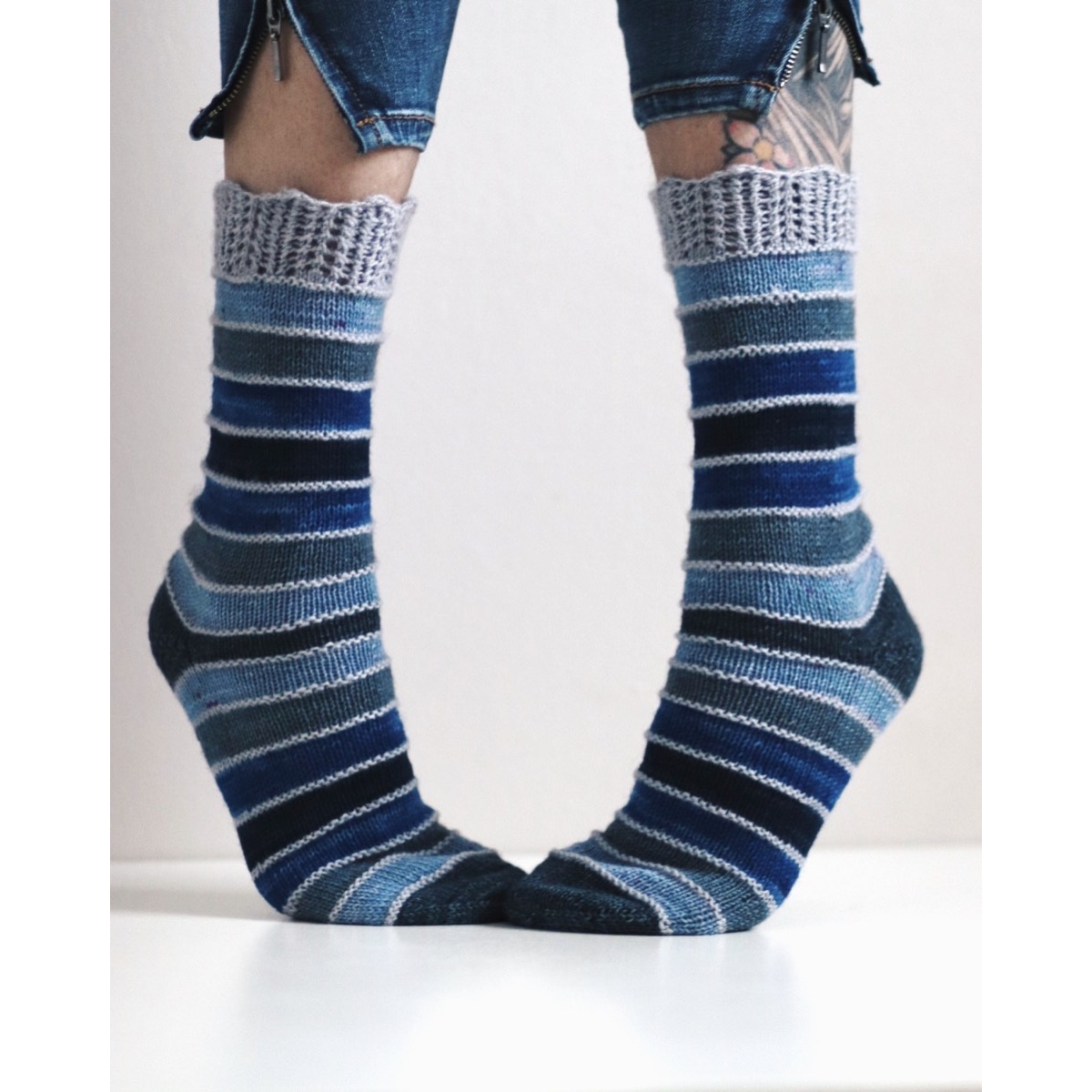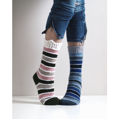Naisten koko 36–42, sukan kokoa on helppo muuttaa vain neulomalla jalka osaa pidemmäksi tai lyhyemmäksi.