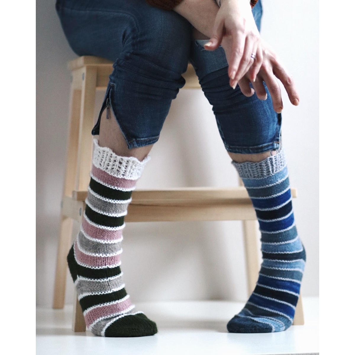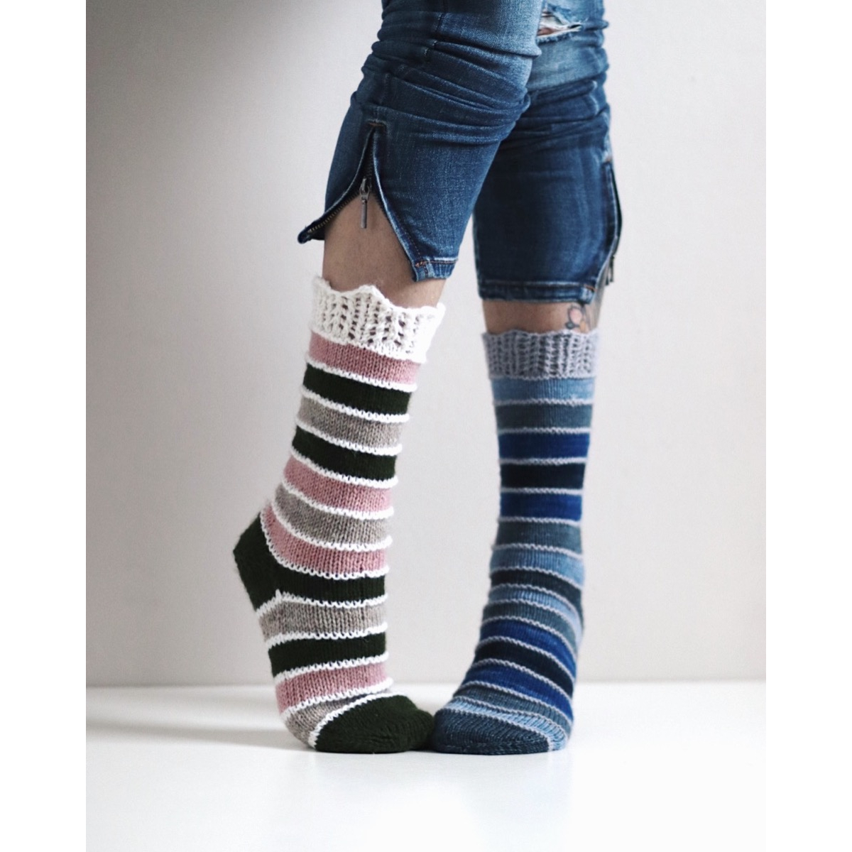 Tarinoita-sukat on jämälankojen tuhoamista varten! Ohjeessa voit käyttää niin aran, kuin fingering-vahvuista lankaa. Tuhoa siis varastoja ja tee söpöily sukat!