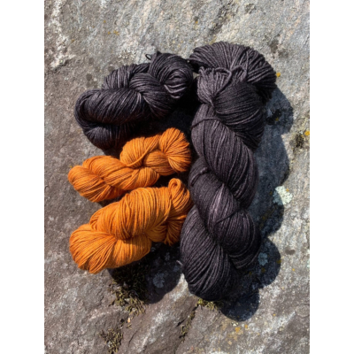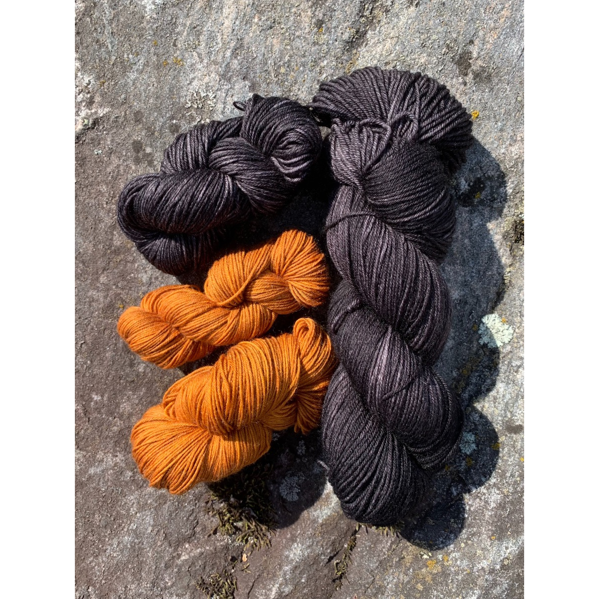 Tämä paketti sisältää superpehmeää ylellistä merinosukkalankaa jolla voit neuloa yhden parin Kati Mäkelän suunnittelemia Folklore-sukkia. Mustan langan (pohjaväri) koostumus on 85% merinovilla ja 15% nylon, ja kuviovärin 75% merinovilla, 25% nylon. Huomaathan että lankamenekki on laskettu ohjeen mukaisella neuletiheydellä neulottuna. Lankaa on paketissa isoimman pohkeen versioon tarvittava määrä plus hieman ekstraa.