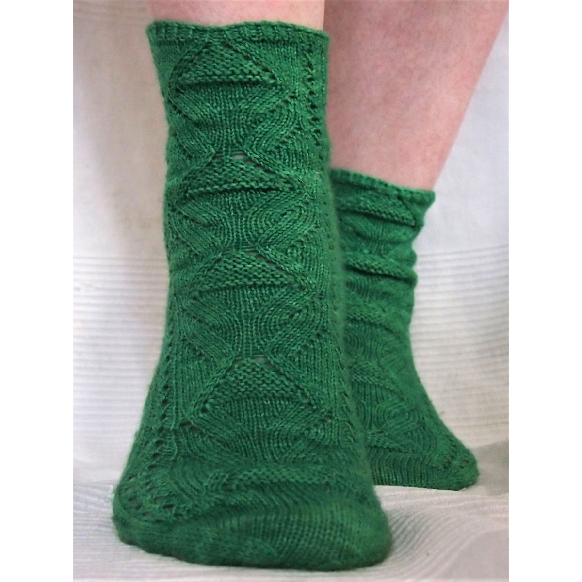 Helena Jorosen suunnittelema Iridescent on helppo ja kaunis pitsisukkamalli, joka pohjautuu keväällä 2018 julkaistuun Iris-sukkaan. Sukan etuosassa on leveä pitsikuvio, ja varren joustimessa on kierrettyjä silmukoita ja keskellä takaosaa kulkee ainaoikein- raita. Sukassa on kaksi kokoa, ja sen terän pituus on vapaasti säädettävissä. Sukan kantapää muodostuu kiilamaisesti tehtävistä lisäyksistä ja lyhennetyistä kerroksista, ei siis poimittavia silmukoita!