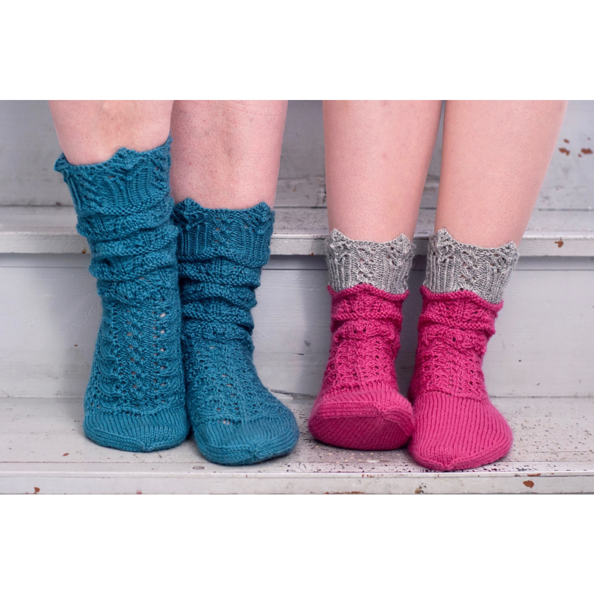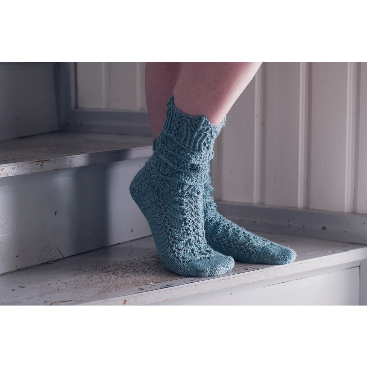 Herkät ja koristeelliset Keijukainen-sukat neulotaan varresta varpaisiin. Mallissa on erilaisia pitsikuvioita, jotka muodostavat runsaan ja rönsyävän kokonaisuuden, keijukaisen sukat. Varren aaltokuvio mahdollistaa sukkien pitämisen joko varsi rutussa tai suoraksi vedettynä.
