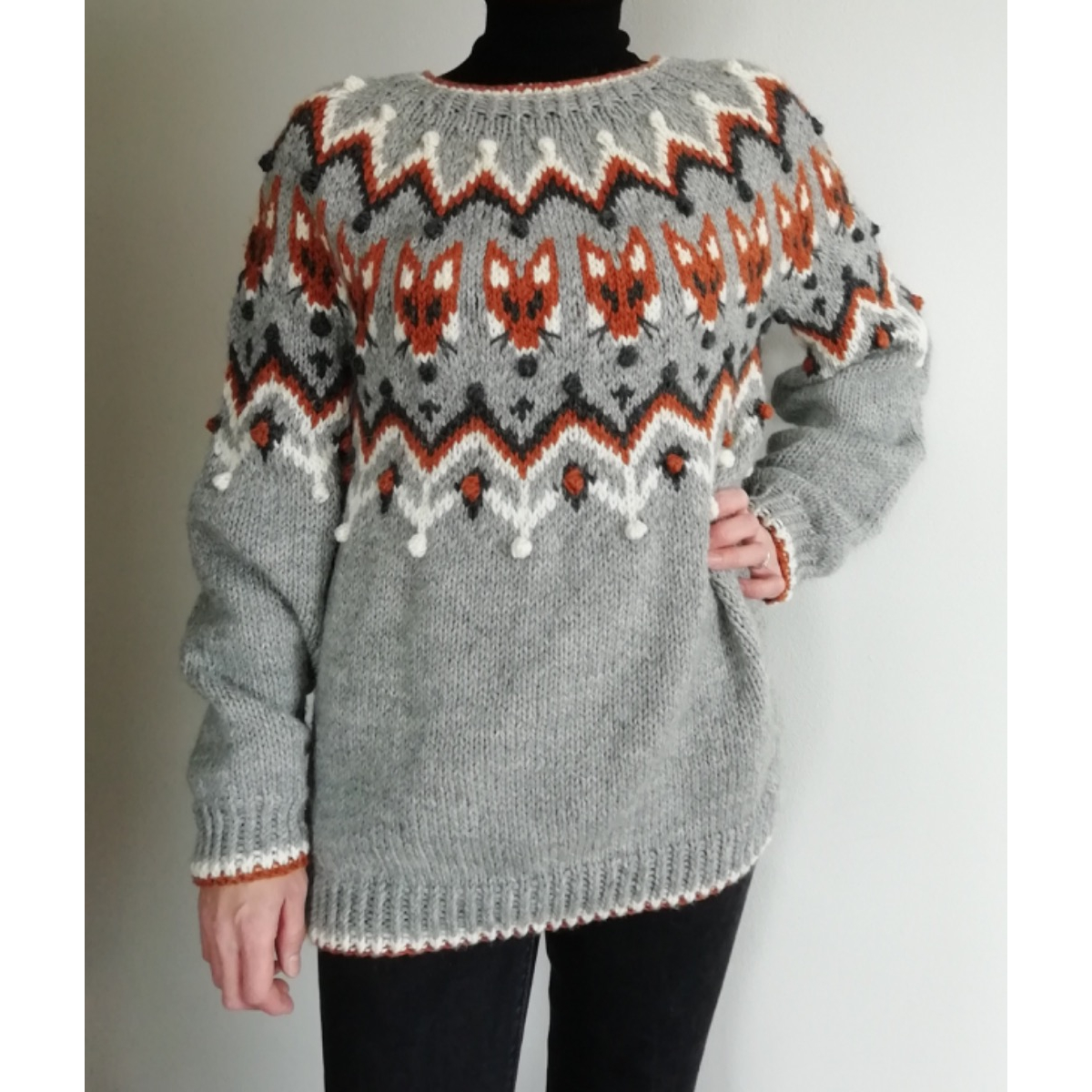 Kettujuttu-kaarrokeneule on leikkisä paksusta langasta neulottava pusero, joka neulotaan alhaalta ylöspäin. Samaa sarjaa on myynnissä Kettujuttu-kaarrokeneule lasten koossa.