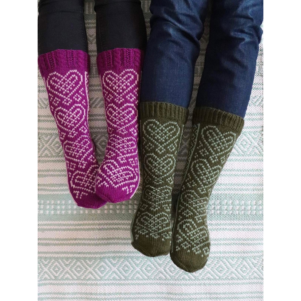 Pikeeri-sukkien 11-sivuinen PDF-ohjelehtinen sisältää hyvät kaaviokuvat ja sanalliset ohjeet suloisiin kirjoneulesukkiin kahdessa eri koossa: