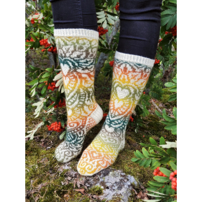Rakkaudesta sinuun on sukkamalli joka on parhaimmillaan liukuvärjättyä kuviolankaa käyttämällä. Malli toimii erinomaisesti sekä vaaleammalla että tummemmalla kuviolangalla.