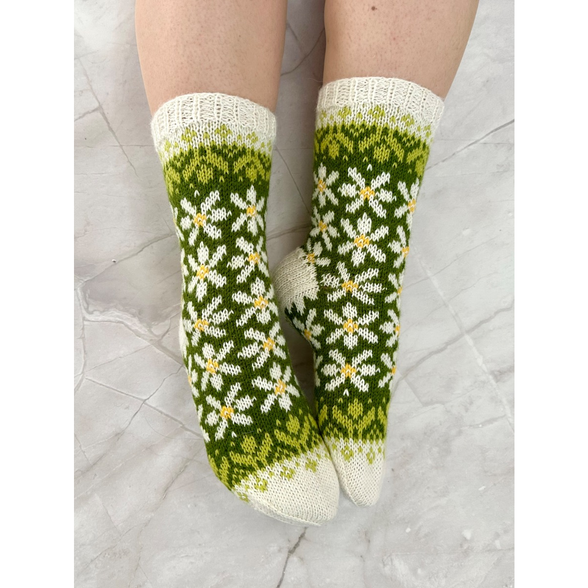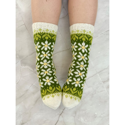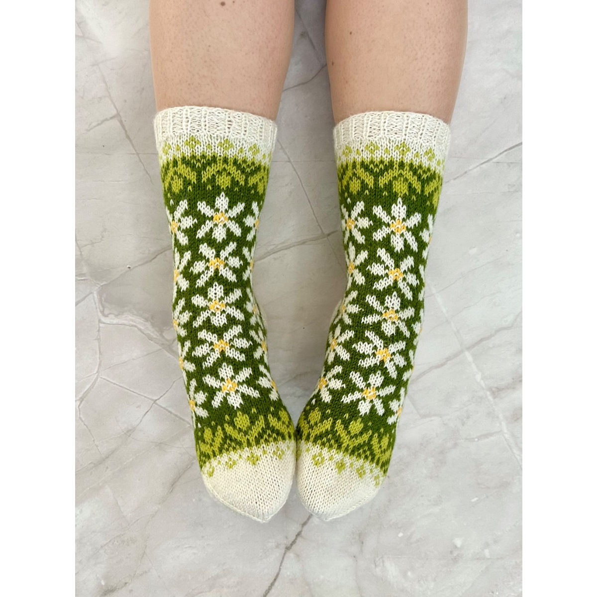 Kukkalehto-sukat lupailevat keväistä lämpöä ja ovat mainio lahja äitienpäiväksi tai astetta fiinimmiksi mökkisukiksi.