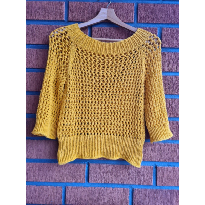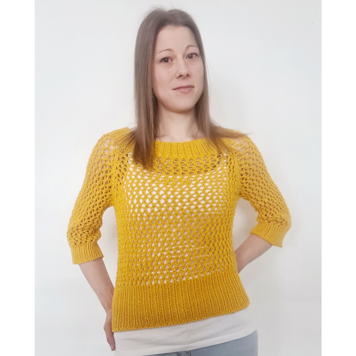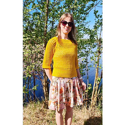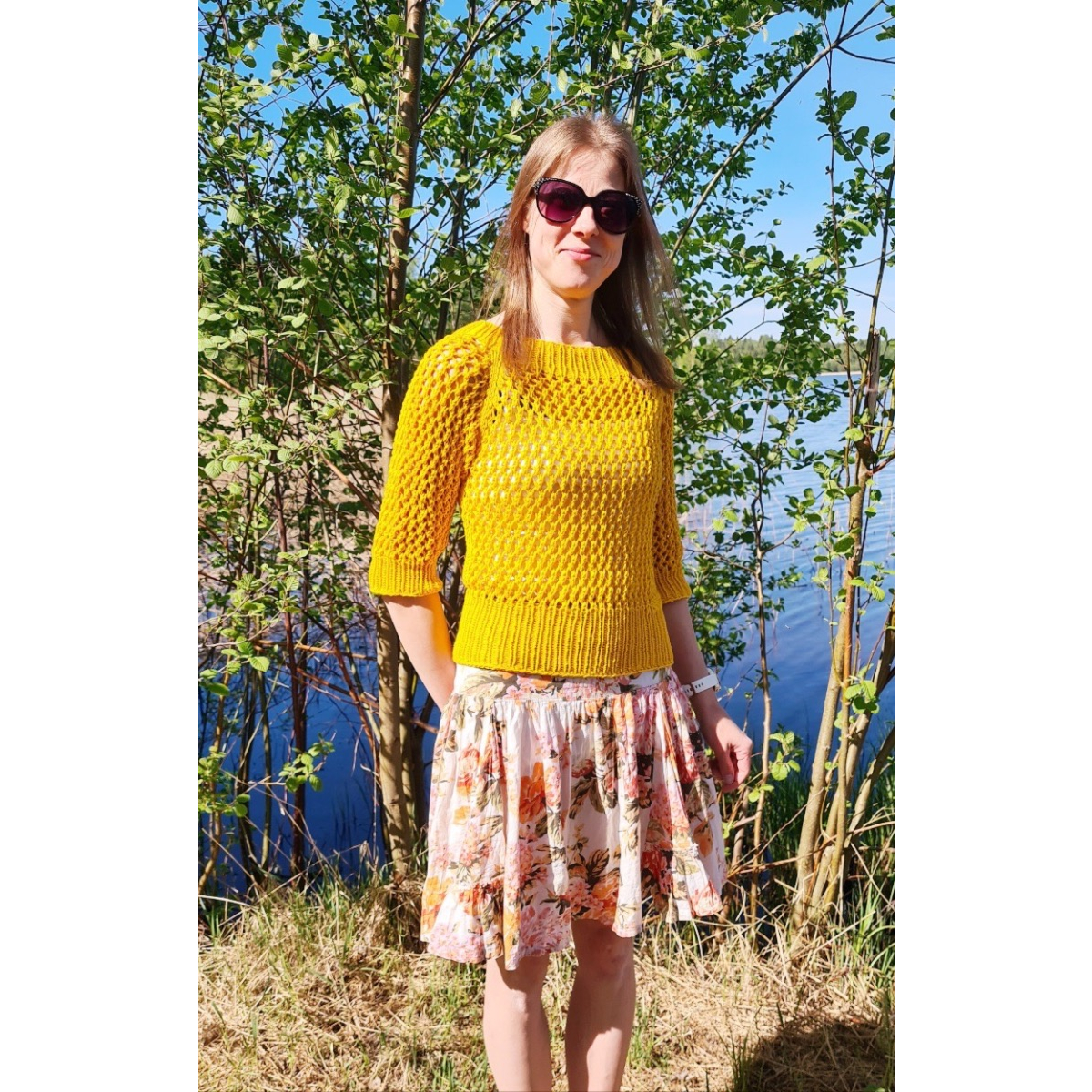 Ilta-aurinko neulepaita neulotaan saumattomasti ylhäältä alas. Rento pintaneule viileisiin kesäiltoihin.