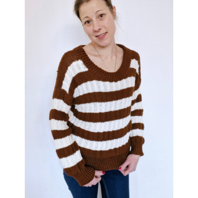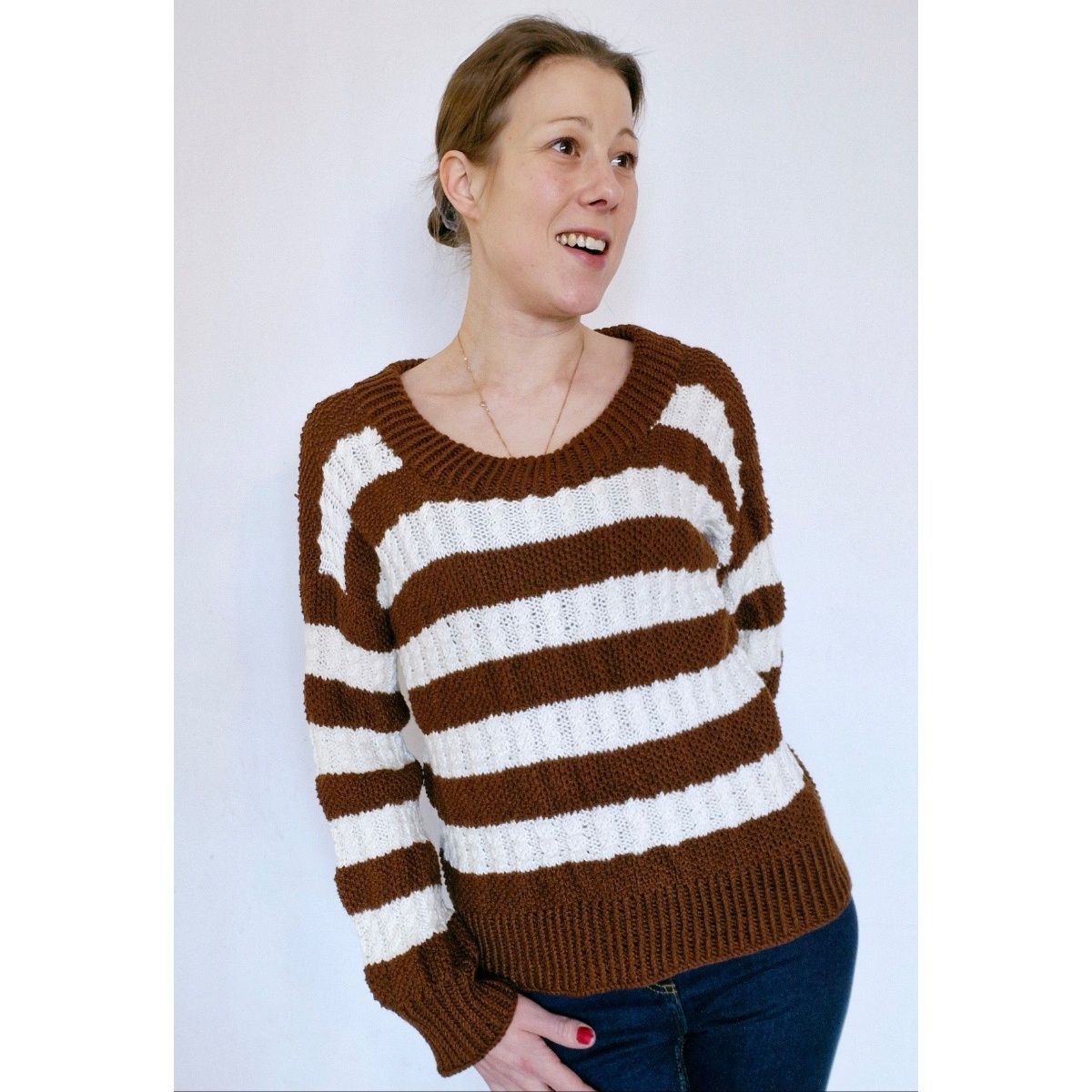 Irina-neulepaita neulotaan ylhäältä alas. Yläosa neulotaan tasona, alaosa sekä hihat neulotaan suljettuna neuleena. Helppo pinta- ja palmikkoneule on nopea neulottava.