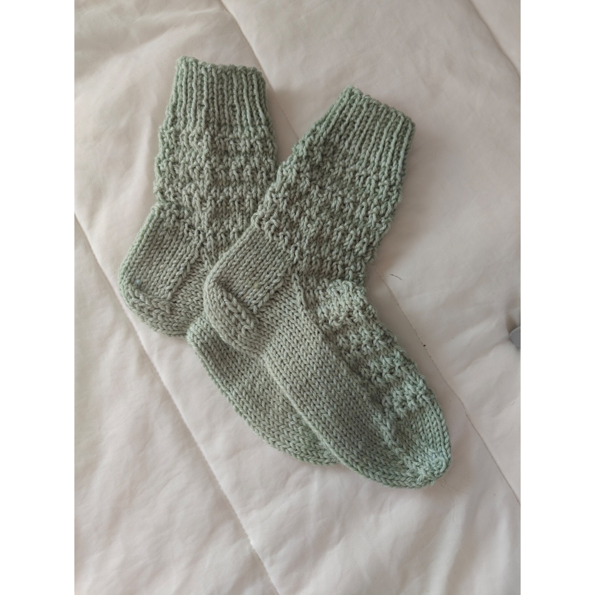 Lanka: Säie Wool BFL Sock DK (100 g = 225 m), mallisukassa sävy Mint condition, tai vastaava DK vahvuinen lanka