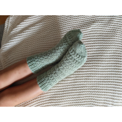 Joona Socks on varresta varpaisiin neulotut sukat. Yksinkertainen, rytmikäs pintaneule antaa sukille sen pienen loppusilauksen. Sukat istuvat napakasti jalkaan pienen negatiivisen väljyyden ansiosta.