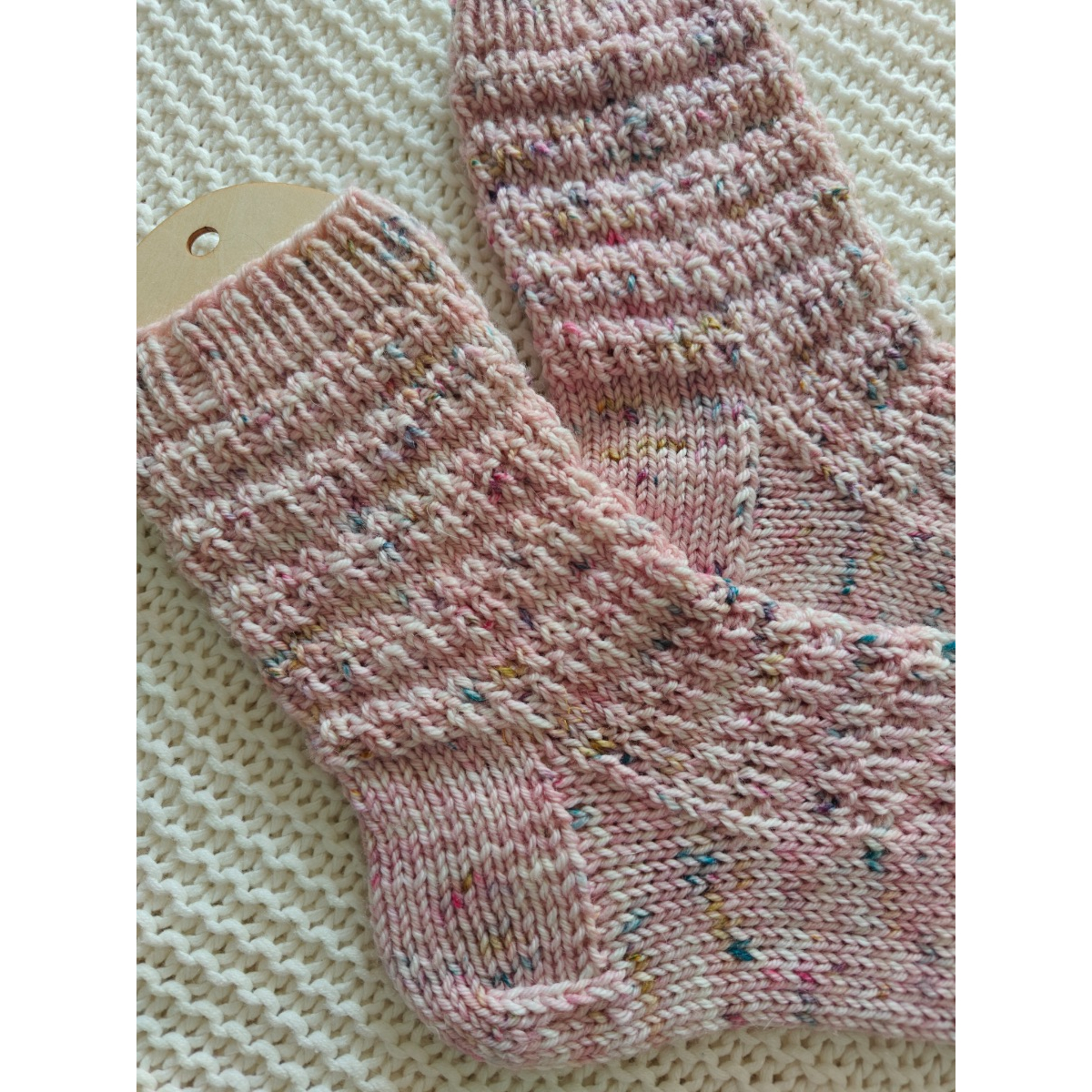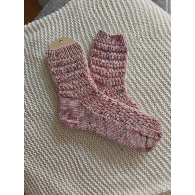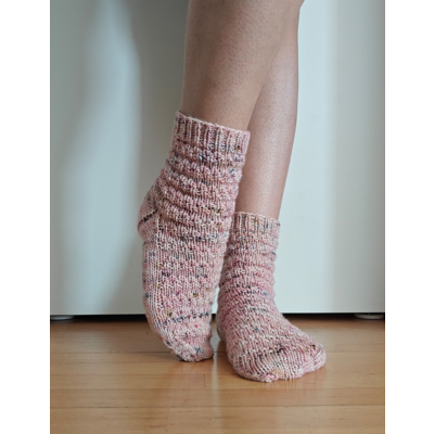 Joona Socks on varresta varpaisiin neulotut sukat. Yksinkertainen, rytmikäs pintaneule antaa sukille sen pienen loppusilauksen. Sukat istuvat napakasti jalkaan pienen negatiivisen väljyyden ansiosta. Ohje on helppo ja sopii mainiosti aloittelijalle kuin kokeneelle neulojalle.