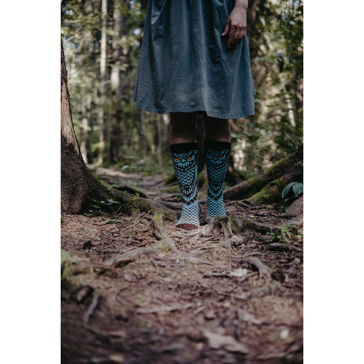 All patterns include a simple reinforced heel and three different yarns weights cater for most knitters. The patterns are suitable for women and men and can be altered to suit even the largest feet of keen forest goers.