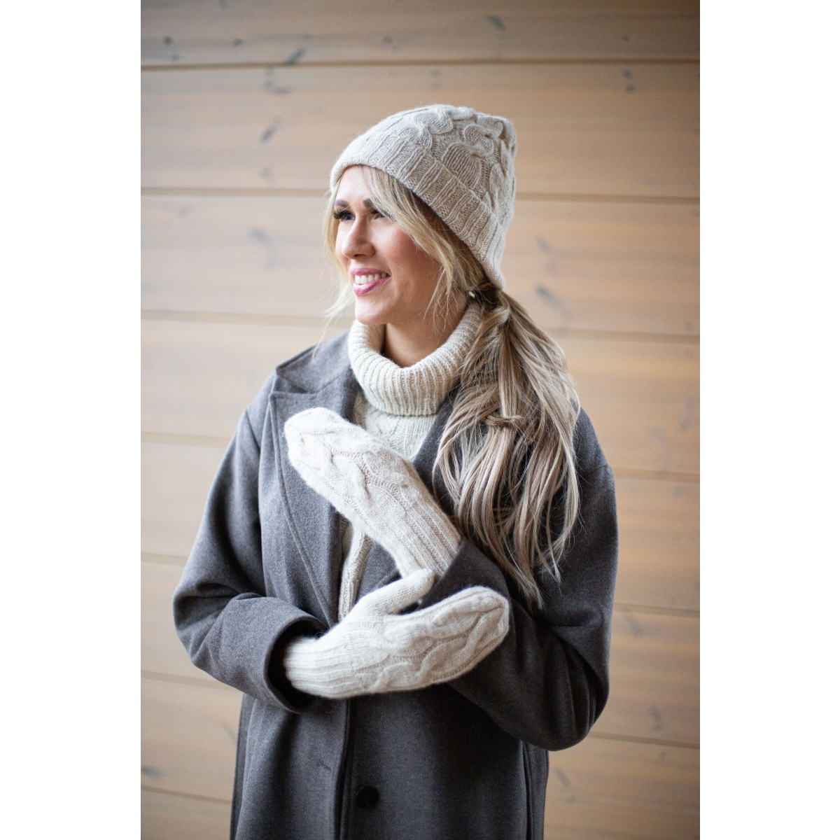 Aurora-neuleasustesetti sisältää ohjeet Aurora-palmikkokauluriin, -lapasiin ja -pipoon. Aurora-palmikkoasusteet on suunniteltu kestämään aikaa ja sopimaan osaksi jokapäiväistä pukeutumista. Aurora-neuleasustesetissä toistuu kaunis palmikkokuvio.