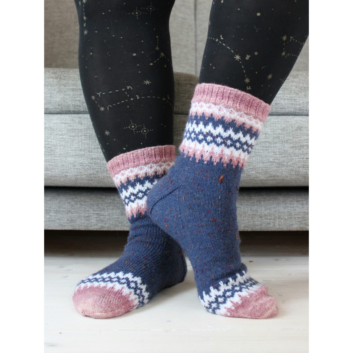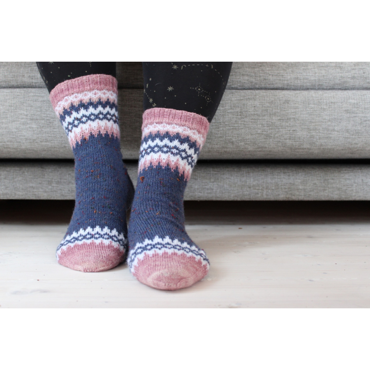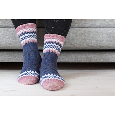 Meri on klassinen sukkamalli, jonka kärkeä ja varrensuuta koristaa yksinkertainen mutta näyttävä kirjoneulekuvio. Ohjeessa on ranskalainen kantapää ja siinä on neljä kokoa. Kirjoneulekuvion oppii helposti ja se sopii myös aloitteleville kirjoneulojille, sillä siinä ei ole pitkiä langanjuoksuja.