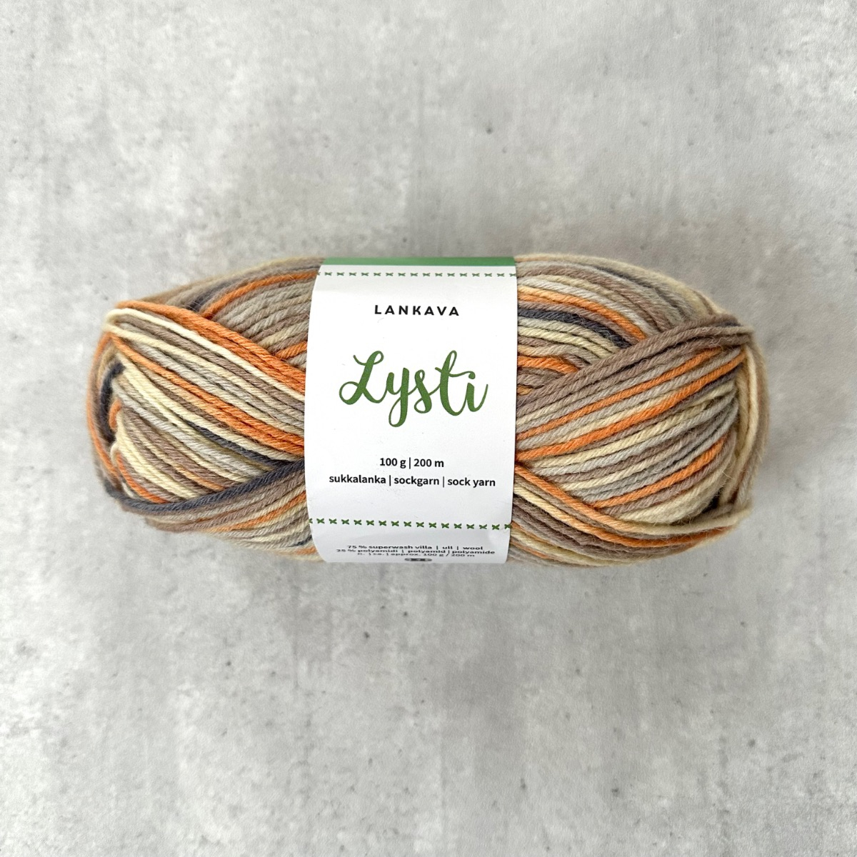 Lankava Lysti on Lankavan oman sukkalankaperheen paksuin ja suosituin sukkalanka. Se on kerrattu kahdeksasta ohuesta säikeestä ja se antaa miellyttävän ja hienon lopputuloksen. Lysti-sukkalangan valmistuksessa on käytetty konepestävää Superwash-villaa 75 % ja kulutuskestävyyden varmistamiseksi siihen on lisätty 25 % polyamidia. 100 g kerässä on lankaa n. 200 metriä ja puikkosuositus on 3,5-4 mm. Koko perheen villasukkien neulominen on lystiä, koska tästä langasta ne valmistuvat erittäin joutuisasti. Langasta valmistuu nopeasti myös muut kulutusta kestävät asusteet ja neulevaatteet itselle, perheelle ja lahjaksi.