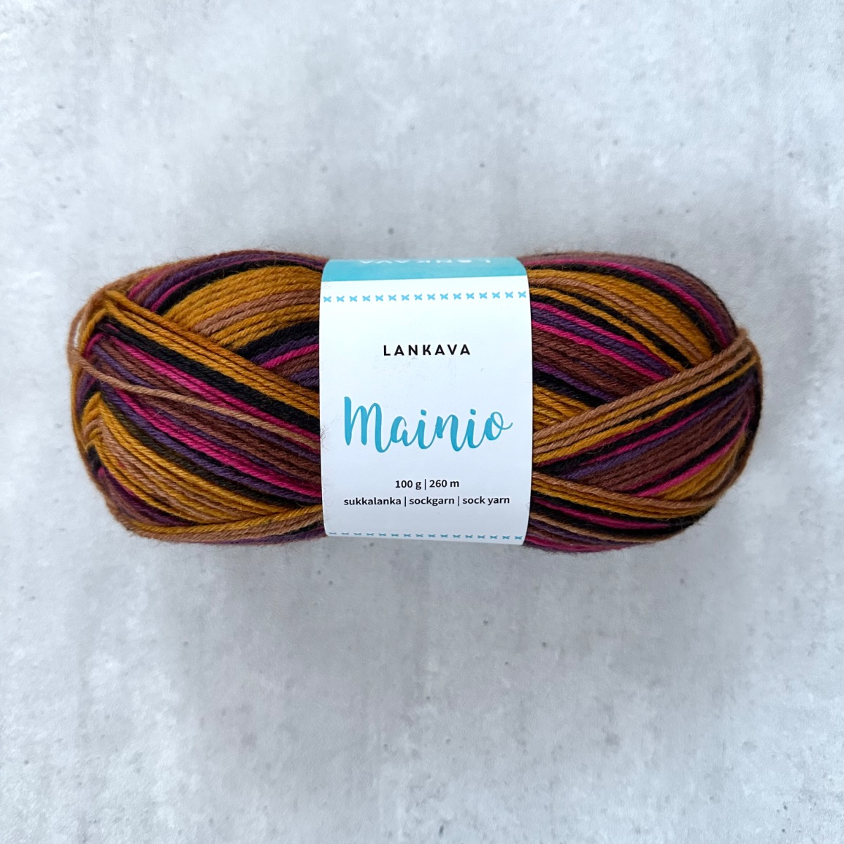 Mainio-sukkalanka edustaa Lankavan oman sukkalankaperheen keskimmäistä paksuutta. Se on kerrattu kuudesta ohuesta säikeestä ja sen valmistuksessa on käytetty konepestävää Superwash-villaa 75 % ja kulutuskestävyyden varmistamiseksi siihen on lisätty 25 % polyamidia. 100 g kerässä on lankaa n. 260 metriä ja puikkosuositus on 3-3,5 mm. Langasta valmistuu mainiosti koko perheen sukat, asusteet ja neulevaatteet itselle, perheelle ja lahjaksi! Mainio on loistava valinta esimerkiksi kauniisiin kirjoneuleisiin eikä lopputulos ole liian paksu.