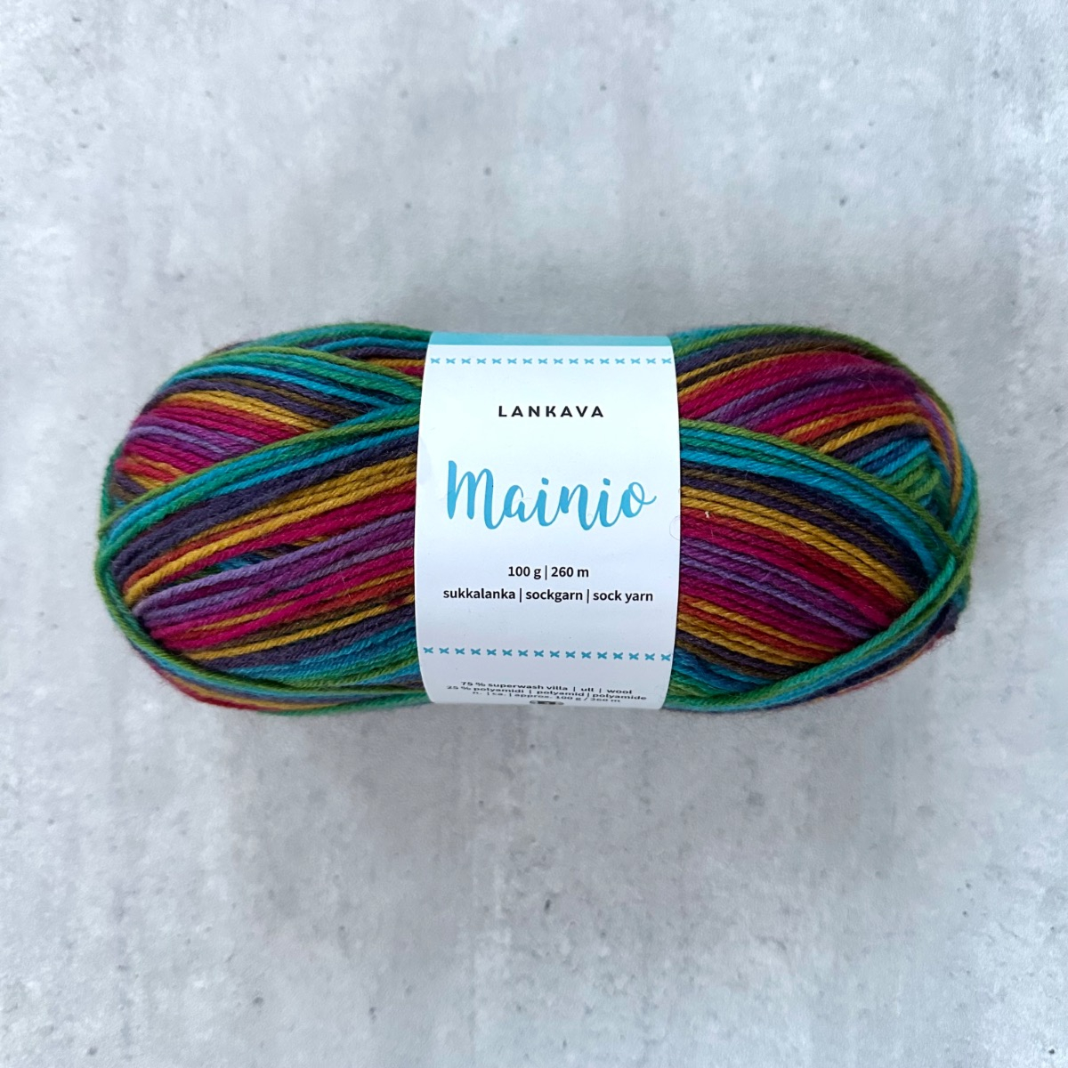 Mainio-sukkalanka edustaa Lankavan oman sukkalankaperheen keskimmäistä paksuutta. Se on kerrattu kuudesta ohuesta säikeestä ja sen valmistuksessa on käytetty konepestävää Superwash-villaa 75 % ja kulutuskestävyyden varmistamiseksi siihen on lisätty 25 % polyamidia. 100 g kerässä on lankaa n. 260 metriä ja puikkosuositus on 3-3,5 mm. Langasta valmistuu mainiosti koko perheen sukat, asusteet ja neulevaatteet itselle, perheelle ja lahjaksi! Mainio on loistava valinta esimerkiksi kauniisiin kirjoneuleisiin eikä lopputulos ole liian paksu.