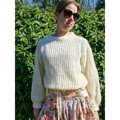 Loiste-neulepaita neulotaan ohuesta langasta ylhäältä alas saumattomasti. Paidassa on yksinkertainen, mutta näyttävä pintaneule. Helman nyörin avulla paitaa on helppo pitää useammalla eri tavalla.
