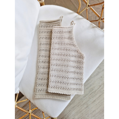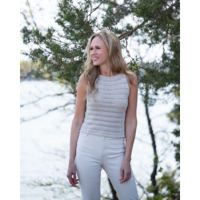 Love Story -neuletoppi vie boheemiin kesätunnelmaan herkällä pitsikuviollaan. Pääntietä koristavat kaunis nyörireunus ja -olkaimet. Love Story–neuletoppi on ihastuttava kesäneule, joka sopii niin shortsien, housujen kuin hameen pariksi. Tässä neuletopissa voit tuntea itsesi tyylikkääksi niin arjessa kuin juhlassa.