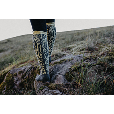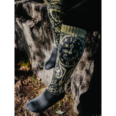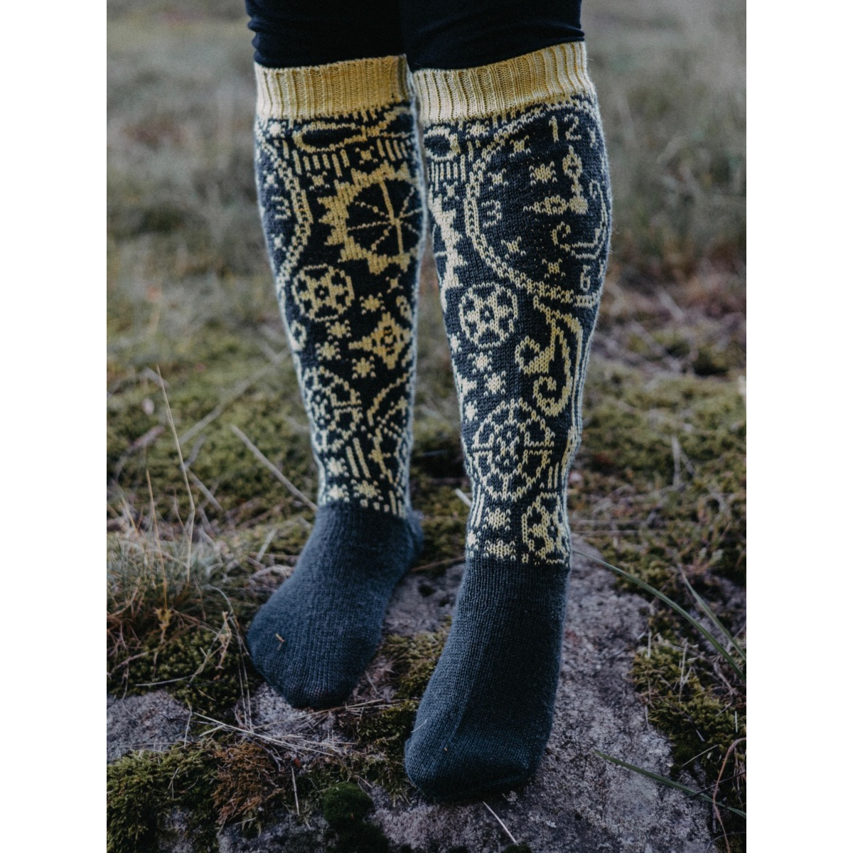 Aika ja avaruus on sukkamalli, joka on tehty noudattaen Kati Mäkelän kehittämää nerokasta Jokakoko-systeemiä. Ohjeessa on siis taulukot ja kaaviot, joiden avulla pystyt neulomaan tämän mallin käytännössä minkä vain kokoiseen jalkaan ja pohkeeseen. Ohjeen tarjoama kokoskaala on valtava: erittäin kapeasta lapsen pohkeesta jopa 54cm ympärysmitan pohkeelle.