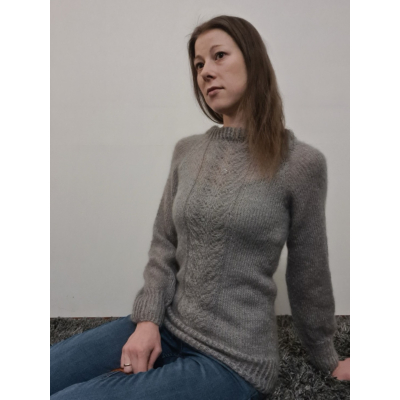 Valmiin työn mitat: rinnan ympärys: 88-96-104-112 cm, neuleen pituus: 63-65-68-71 cm, hihan sisäpituus: 48- 49-50-50 cm