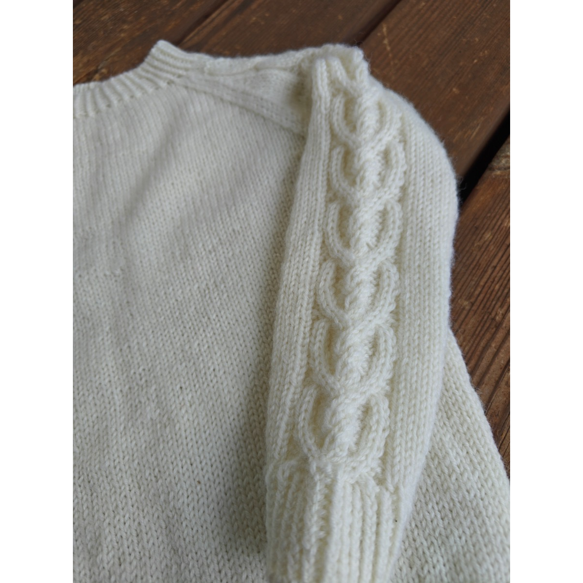 Ylva Mini Sweater on lämmin ja kaunis lasten neulepusero, jonka hihojen ulkosyrjissä kulkee näyttävä sydänpalmikkokuvio. Paita neulotaan alhaalta ylöspäin suljettuna neuleena, ja raglankavennukset muotoilevat kauniisti puseron yläosan.