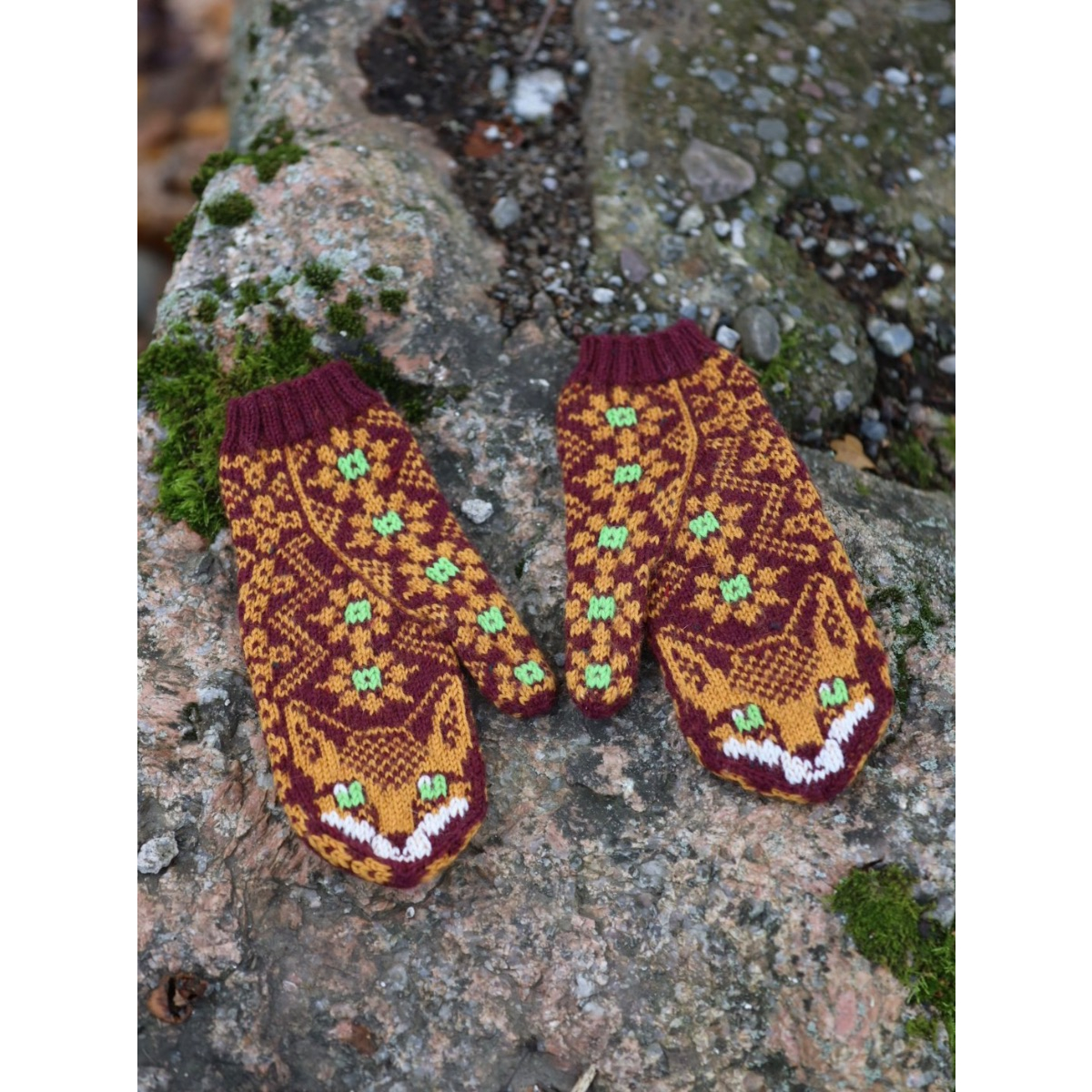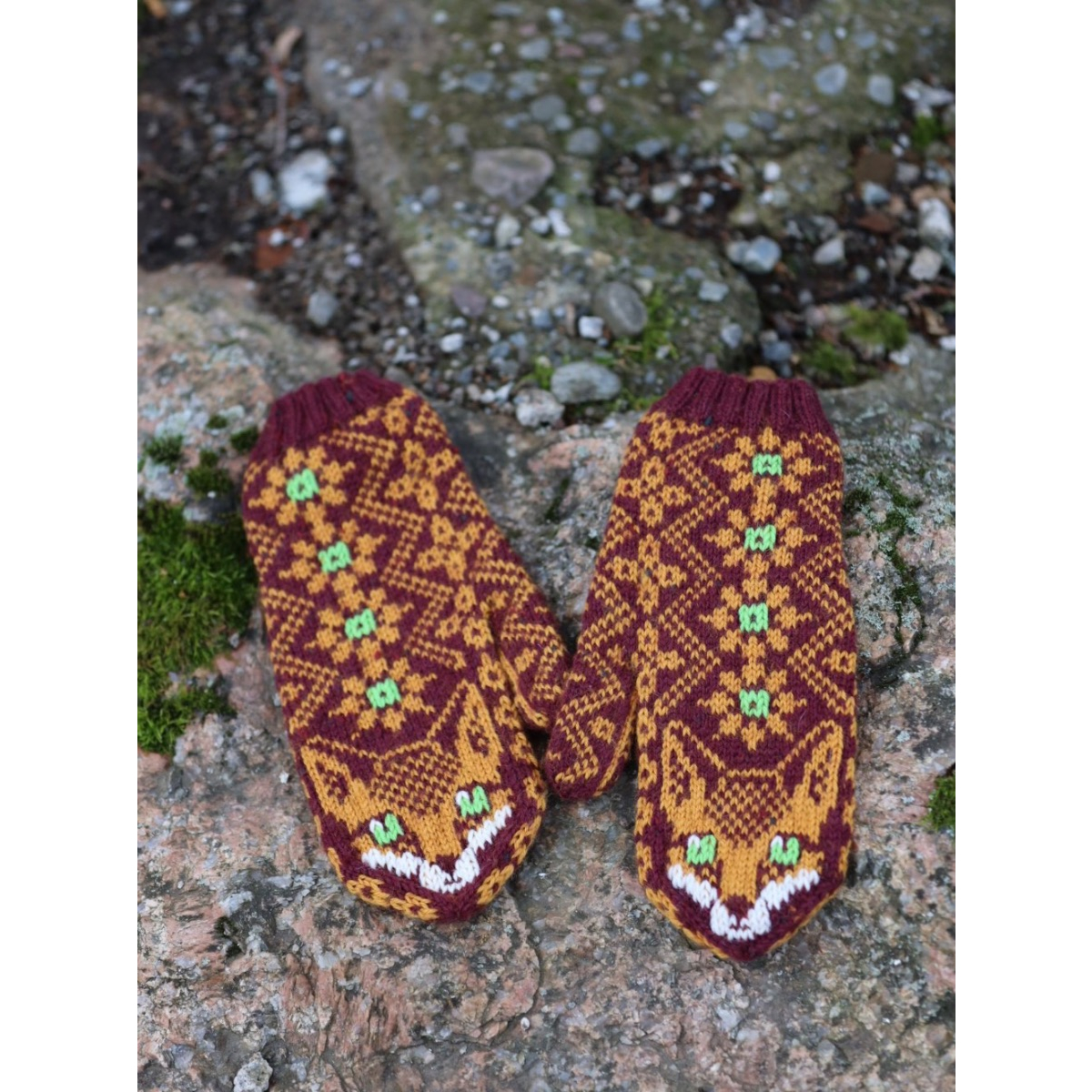 Taikakettulapaset ovat samaa sarjaa Taikakettusukkien kanssa, mutta lapaset neulotaan ohuesta villasekoitelangasta. Lapaset on suunniteltu sopivaksi naisen käteen, ja väritys on kuvan mukainen (viininpunainen/sinappi).