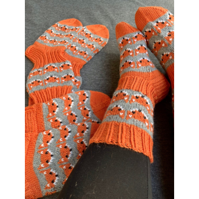 Ketut ovat yksi suosituimmista kuvioista mihin villasukkakansa ei näytä kyllästyvän! Näistä kettusukista tekee erityisen "kettumaiset" kaunis murrettu oranssi ja sen vieressä perinteinen harmaa.