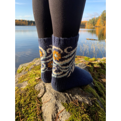 Voit tilata näitä sukkia koosta 23 ylöspäin aina kokoon 37, joka sopii myös pieneen aikuisen jalkaan. Nämä sukat neulotaan ohuesta konepestävästä sukkalangasta.