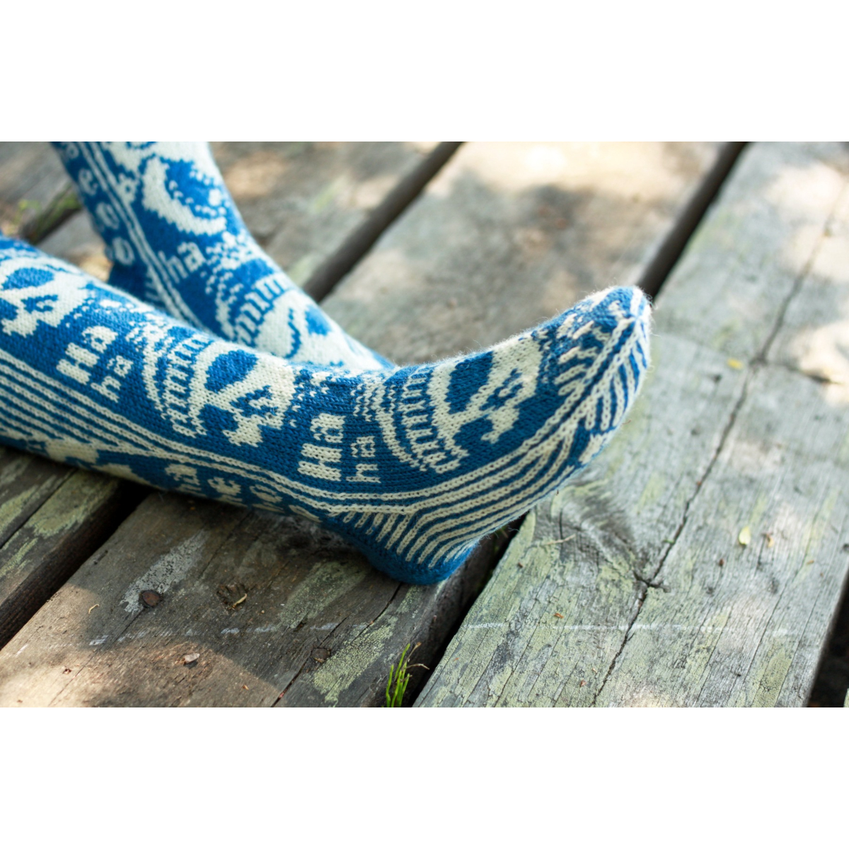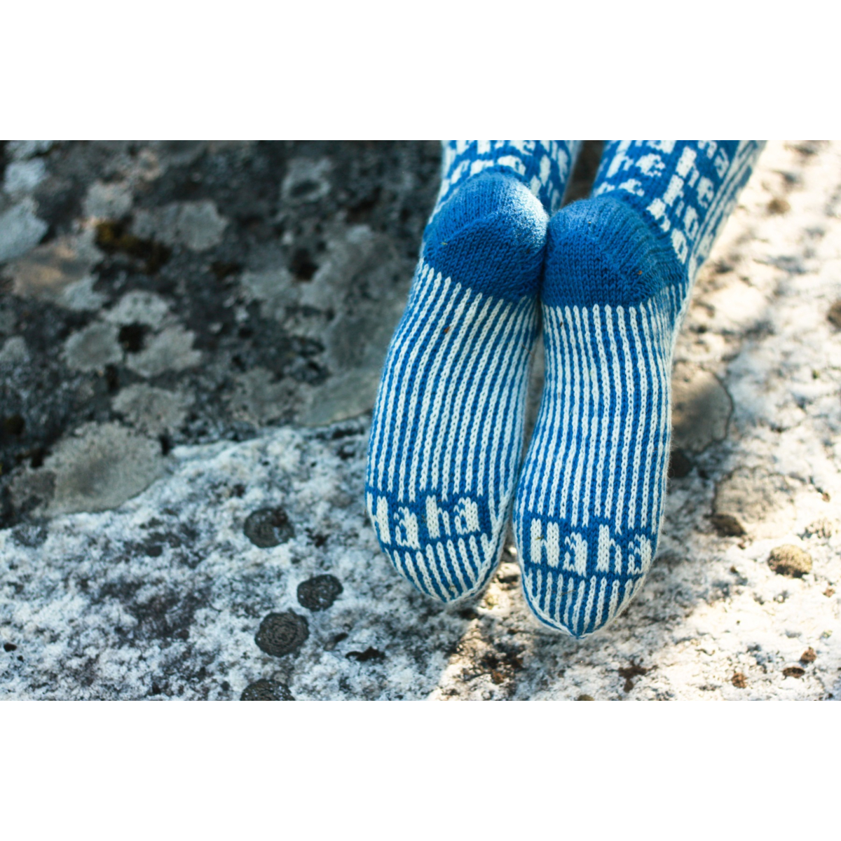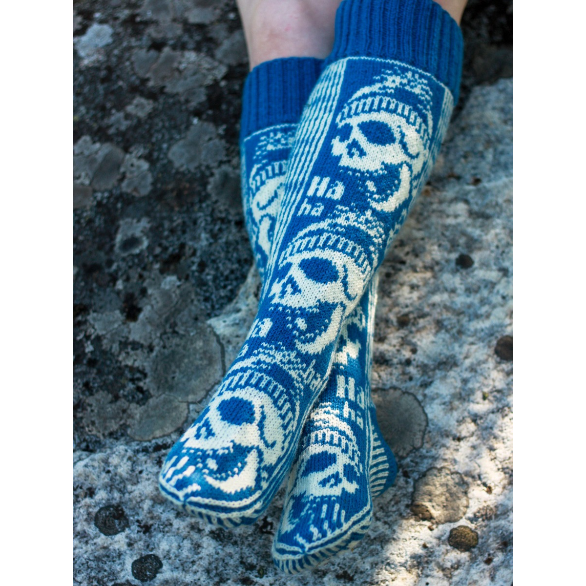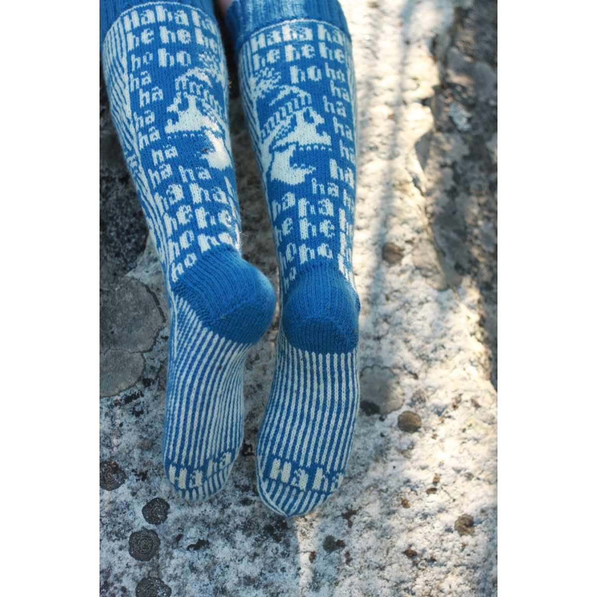 Nämä polvipituiset sukat takaavat lämpimät jalat, hyvät hohotukset ja paljon ihailua. Materiaalina on käytetty kestävää sukkalankaa, mikä onkin ainoa tavanomainen piirre minkä näistä sukista löydät. Todellista villasukkien eliittiä sekä suunnitteluun että toteutukseen tarvittavan tarkkuuden vuoksi.