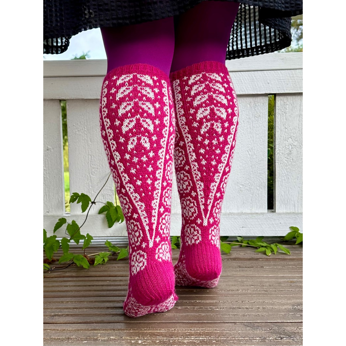 Hugo-sukat on saatavissa kahdessa eri värissä (kuvioväri valkoinen) ja ne sopivat parhaiten 35-39cm pohkeelle.