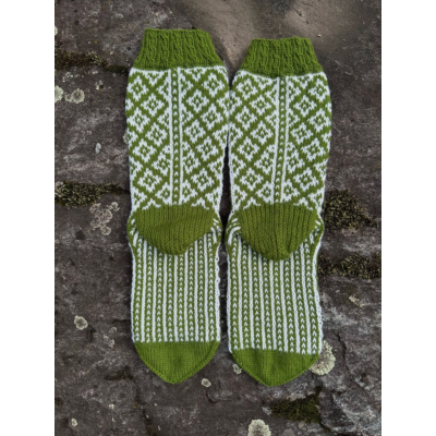 Kruununperijä-sukat voit tilata kolmessa eri värissä ja neljässä eri koossa. Huomaathan, että kokoon 40 asti sukat neulotaan ohuesta sukkalangasta ja koot 41-46 keskipaksusta sukkalangasta.