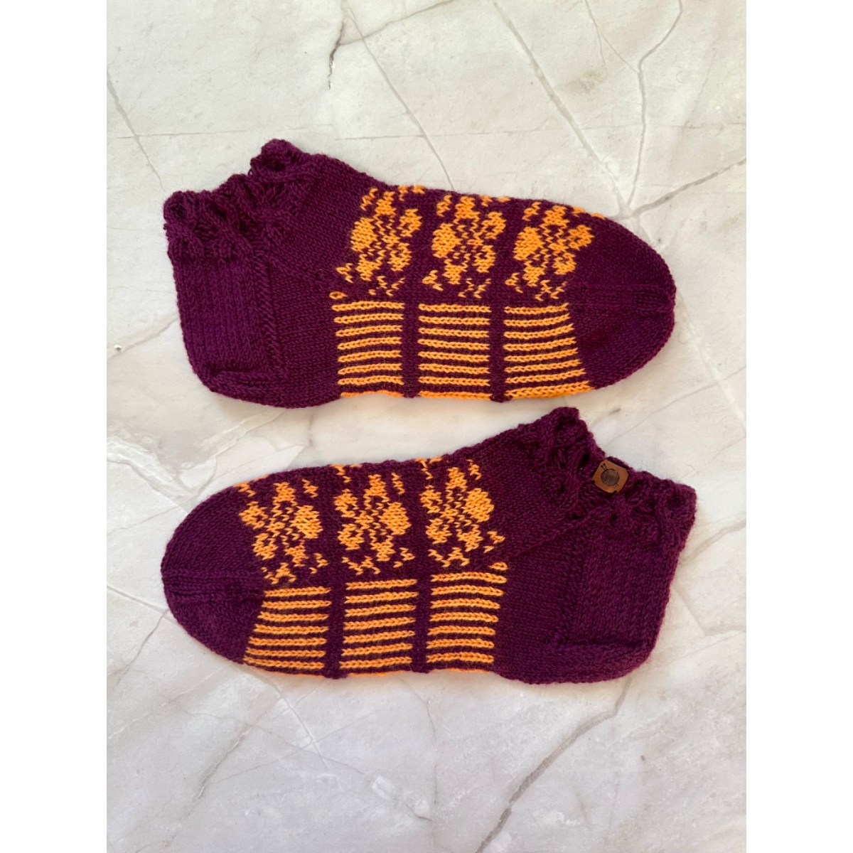 Kesäiset nilkkasukat konepestävästä sukkalangasta. Mallin on suunnitellut Satu Laasonen.