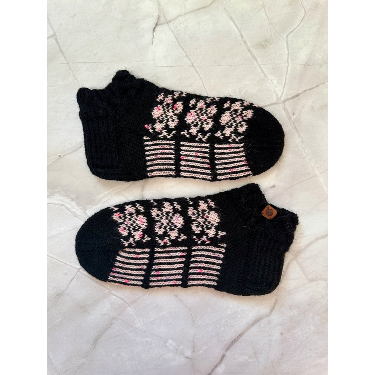Kesäiset nilkkasukat konepestävästä sukkalangasta. Mallin on suunnitellut Satu Laasonen.