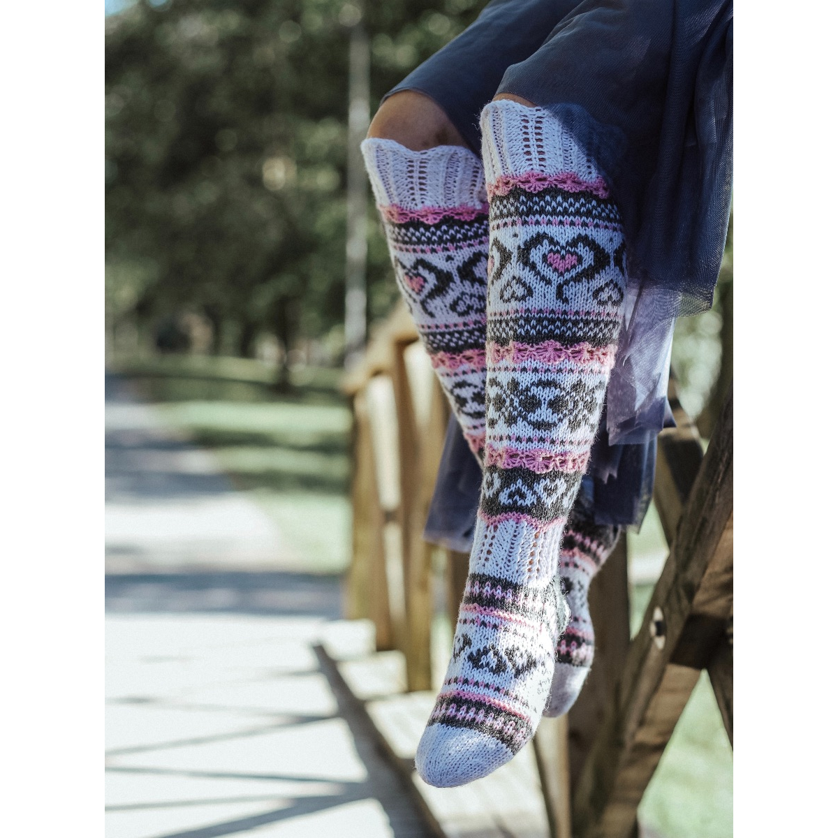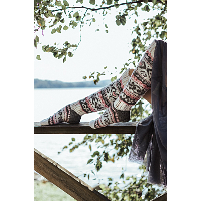 Sinikka Nissi on nimennyt nämä suunnittelemansa sukat isoäitinsä Lempi-Idan mukaan. Sukkia koristaa perinteisten kuvioiden lisäksi pitsiset yksityiskohdat.