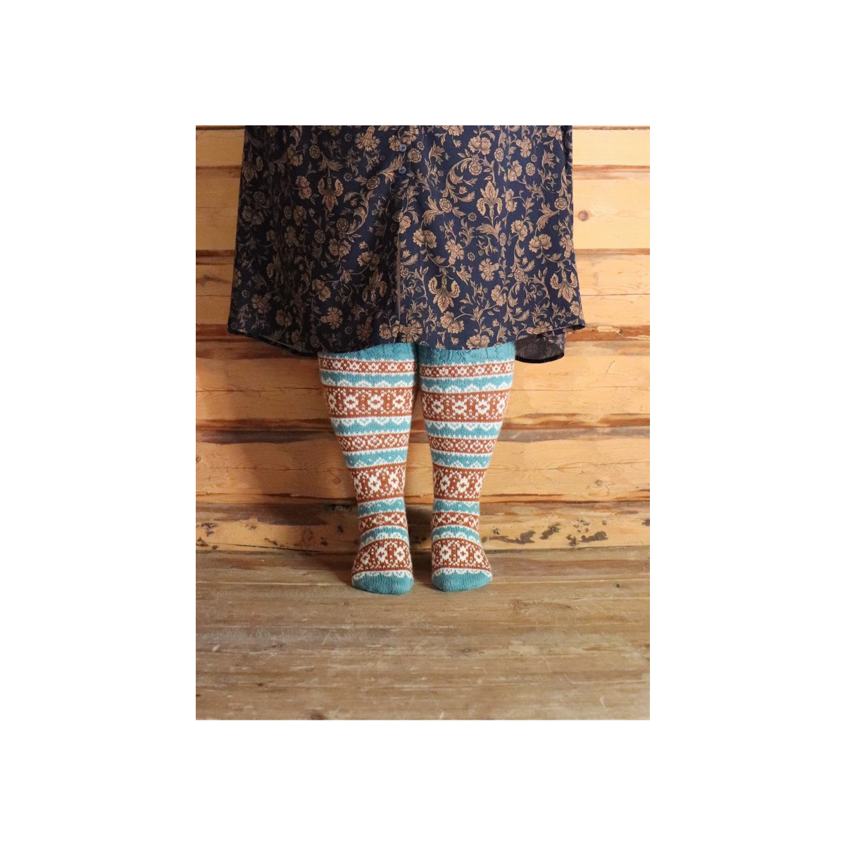 Tiheys: 28 silmukkaa ja 31 kerrosta kirjoneuletta = 10 x 10 cm