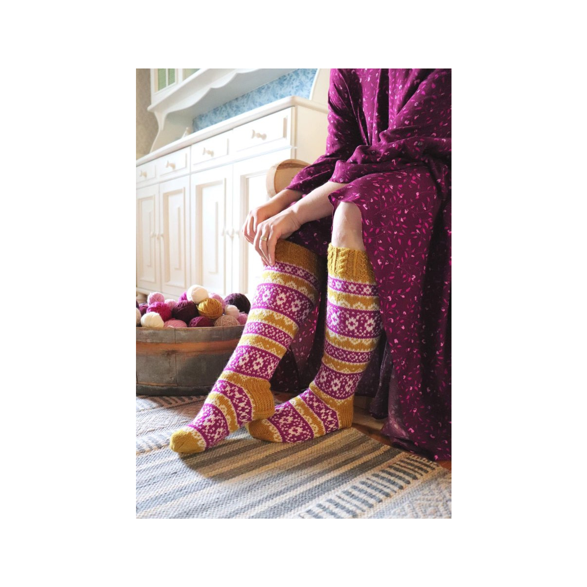 Elina-sukkien ohje julkaistiin ensimmäisen kerran syksyllä 2022 Hand Finnishedin kautta Sukkasalaisuus 1:n syyskuun ohjeena.