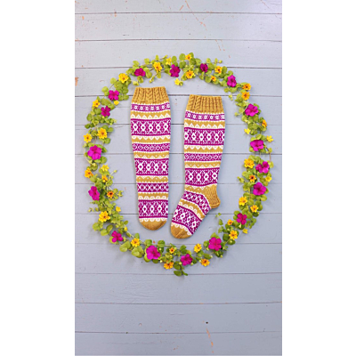 Elina-sukkien 15-sivuinen PDF-ohjelehtinen sisältää hyvät kaaviokuvat ja sanalliset ohjeet kauniisiin pitsisukkiin kahdessa eri koossa: