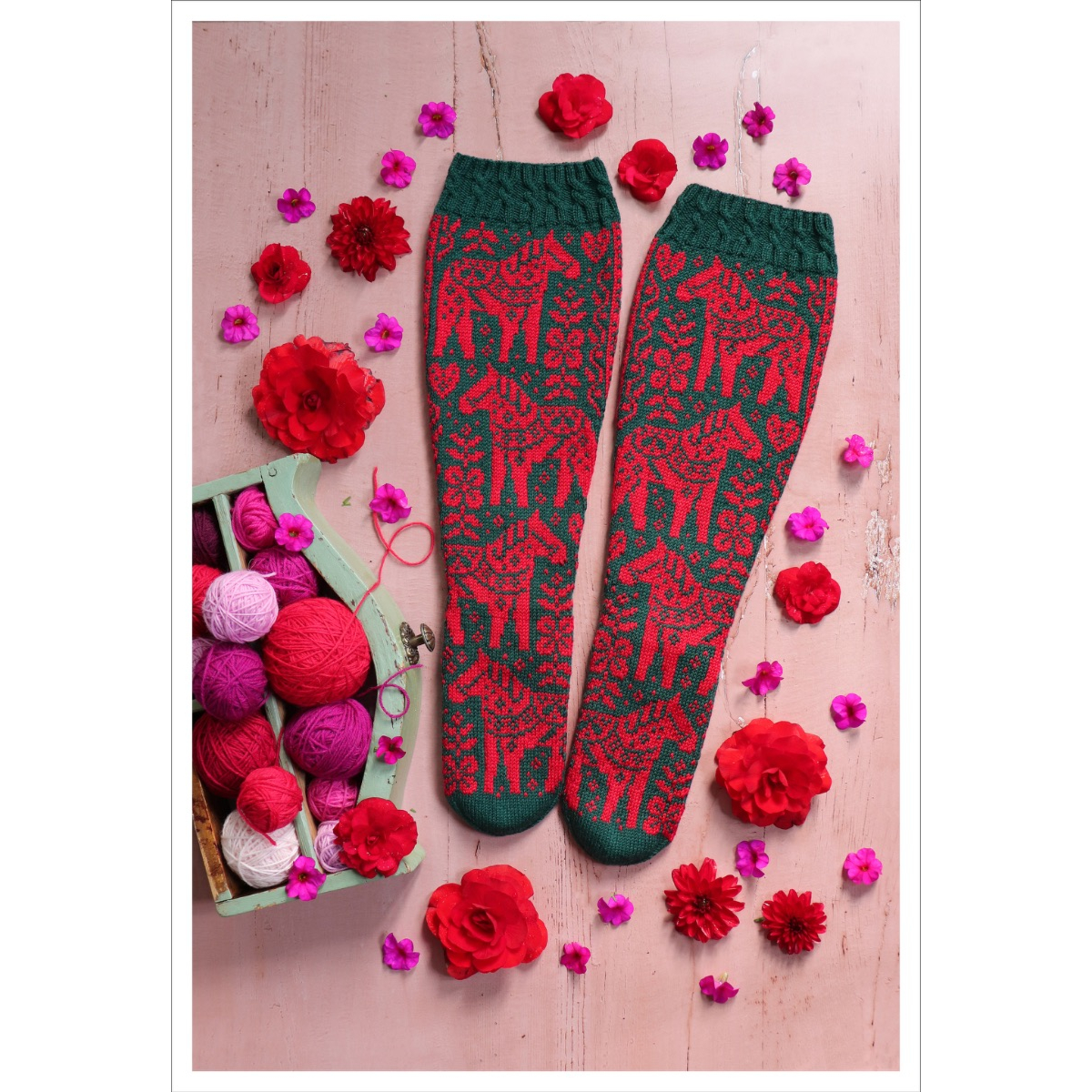 Colors: Main color Gründl Hot Socks Pearl mit Kashmir 08 green 107 g, contrasting color Hjertegarn Armonia 5218 red 67 g.