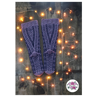 Pitkävartiset sukat neulotaan kirjoneuleena ohuesta, fingering-vahvuisesta sukkalangasta. 15-sivuinen PDF-ohje sisältää hyvät kaaviokuvat ja sanalliset ohjeet kirjoneulesukkien kahteen eri kokoon.