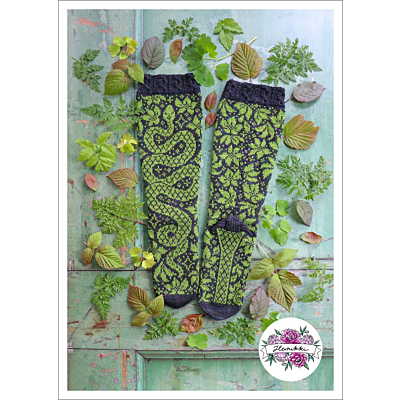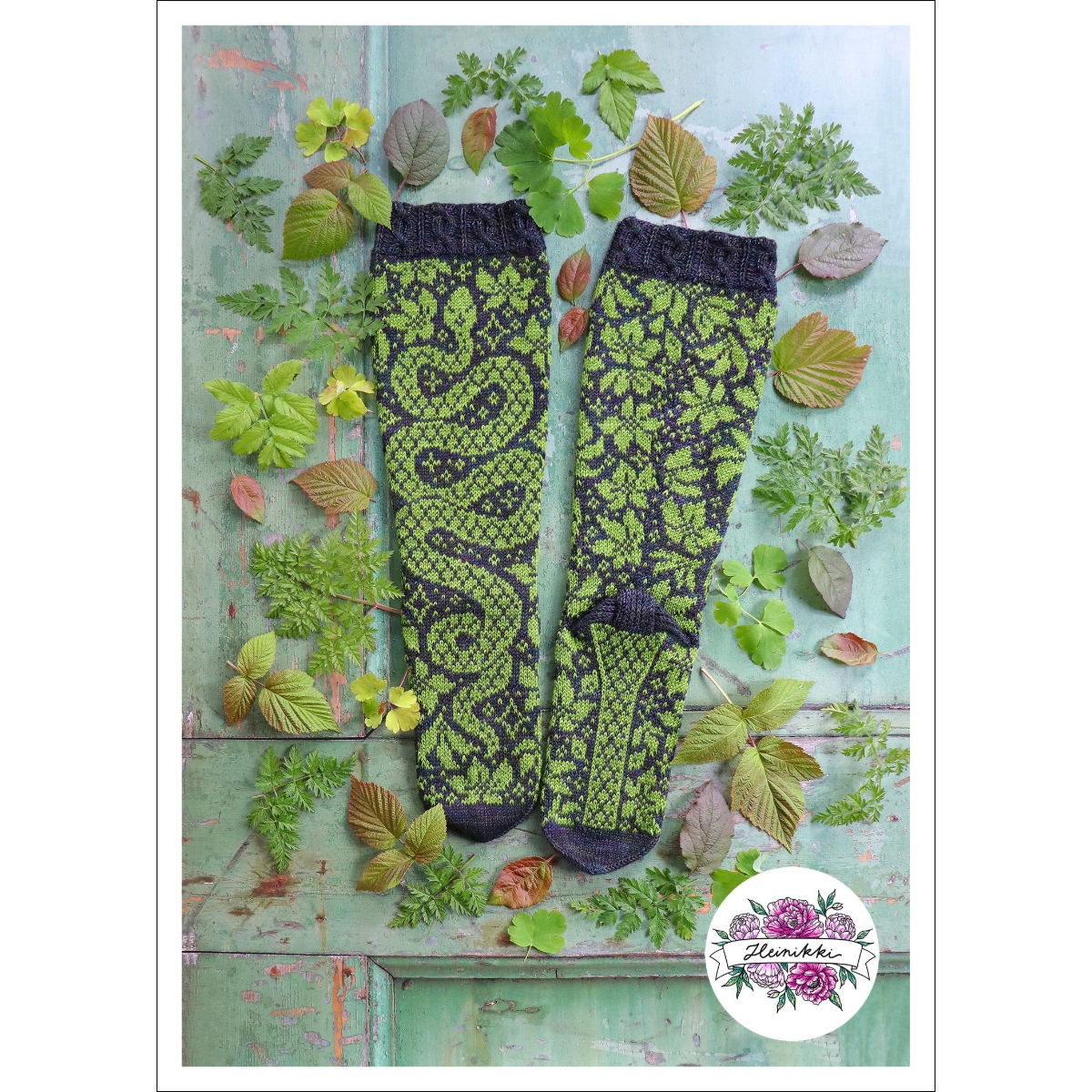 Pitkävartiset sukat neulotaan kirjoneuleena ohuesta, fingering-vahvuisesta sukkalangasta. 15-sivuinen PDF-ohje sisältää hyvät kaaviokuvat ja sanalliset ohjeet kirjoneulesukkien kahteen eri leveyteen.