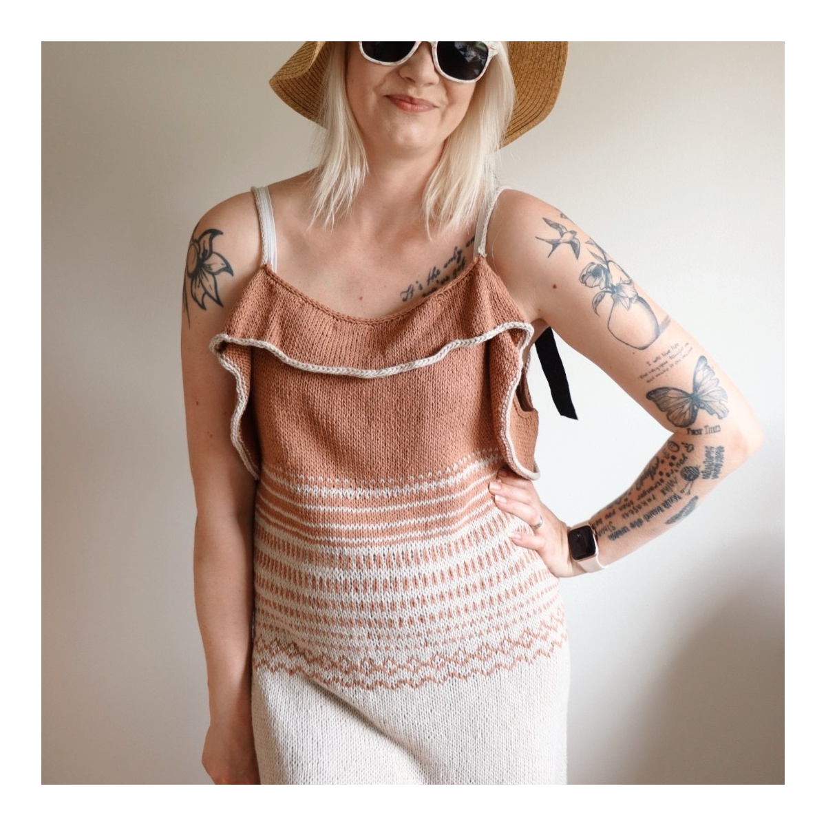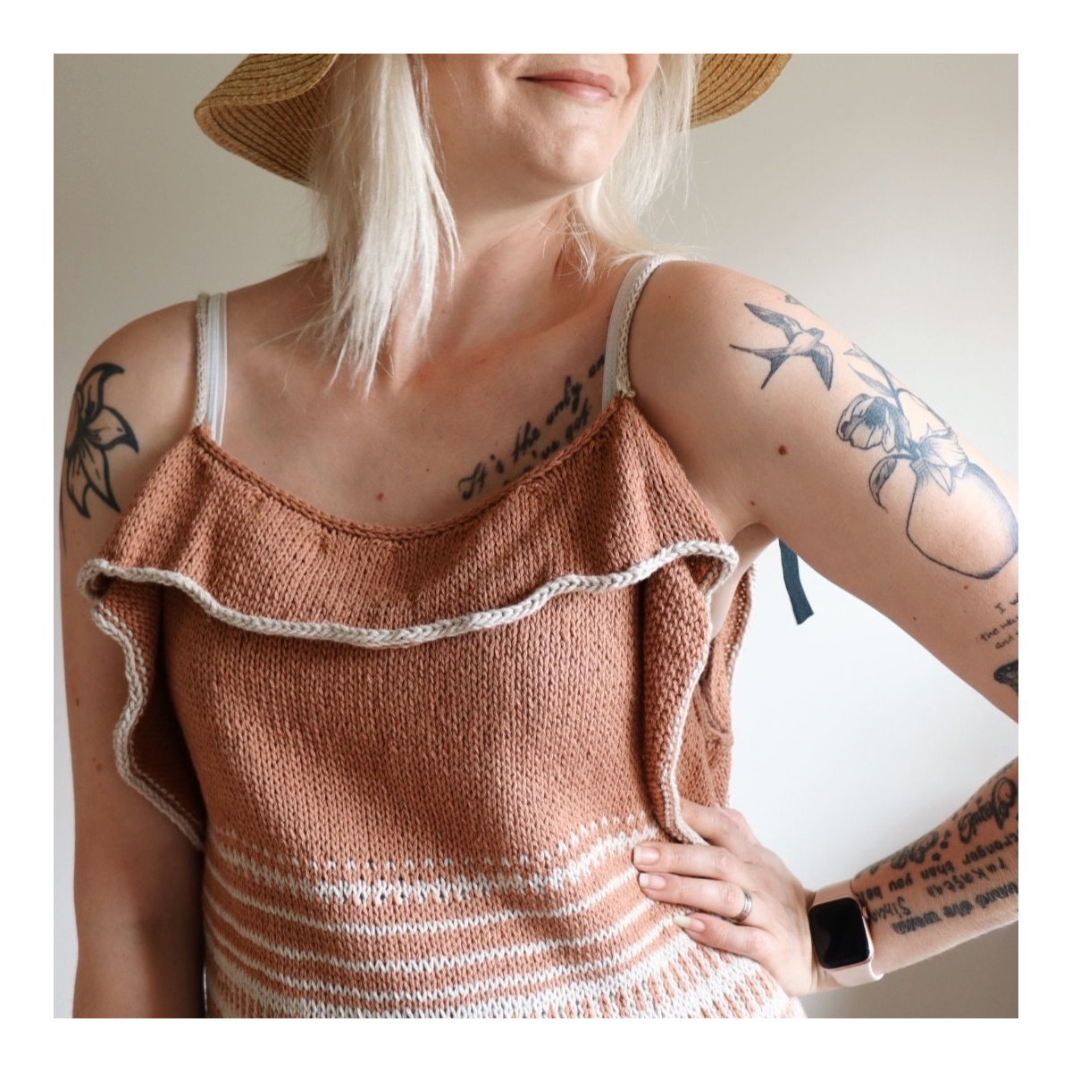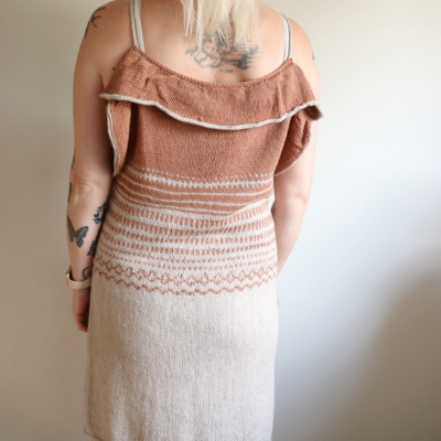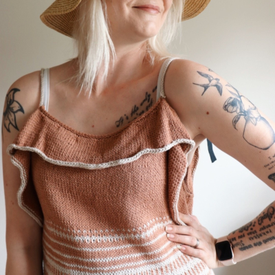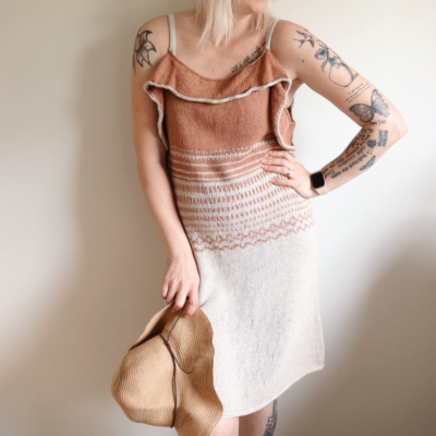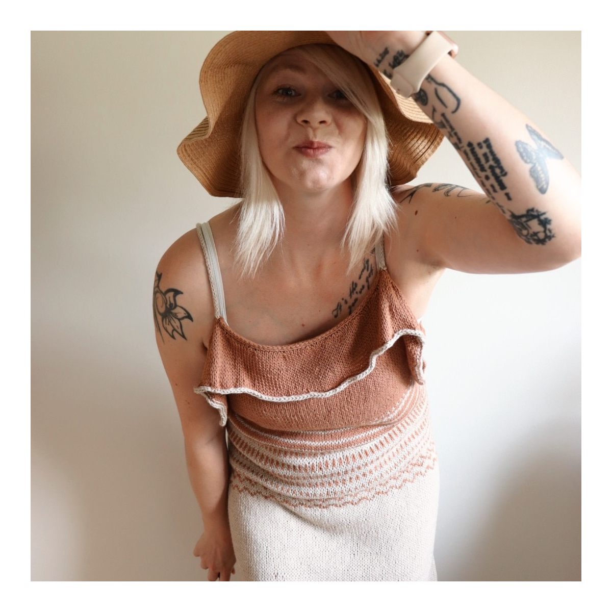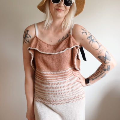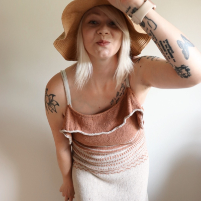 Sonya on helppo ja nopea ohje myös aloittelijoille. Helpolla kirjoneulekuviolla piristelty Sonya voidaan neuloa myös täysin yksivärisenä ja ilman röyhelöä.