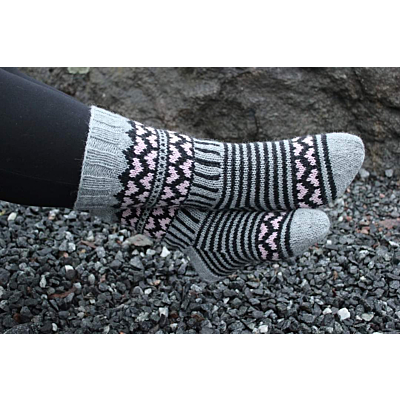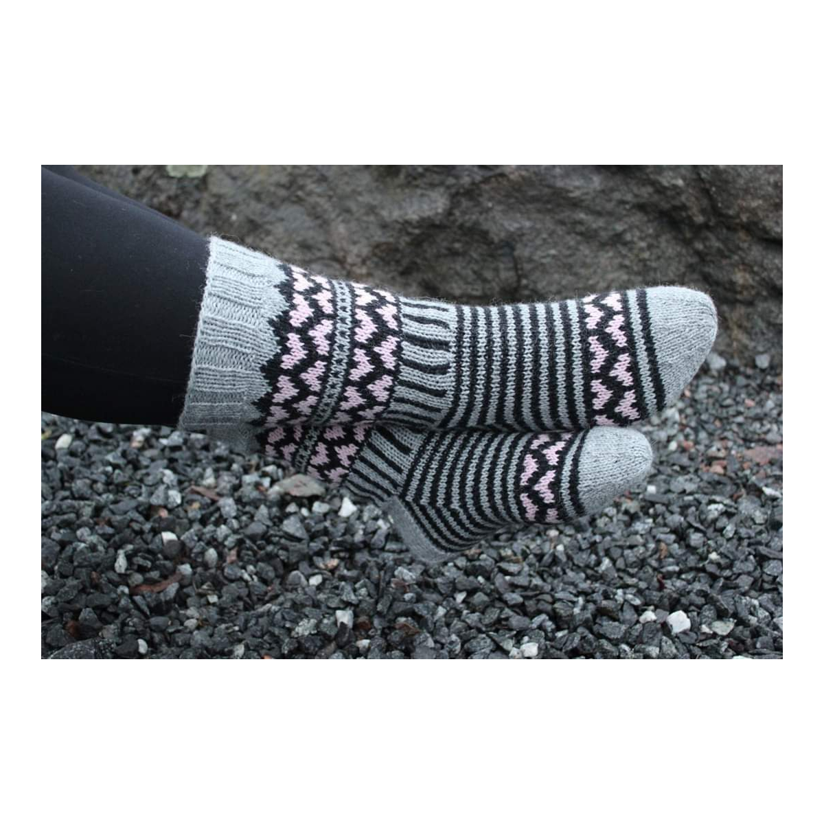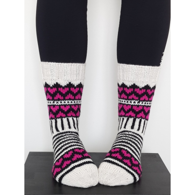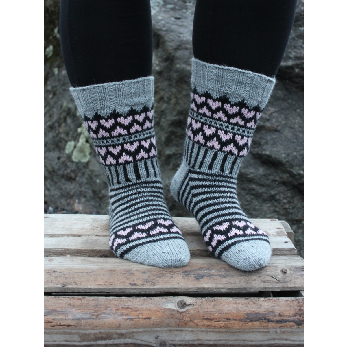 Ystävänpäivän helpot sydämelliset kirjoneulesukat kolmessa koossa.