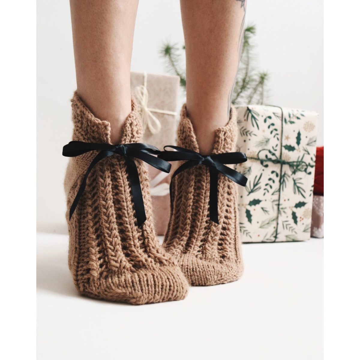 Nämä söpöt joulutossut neulot nopeasti kahdessa eri osassa.