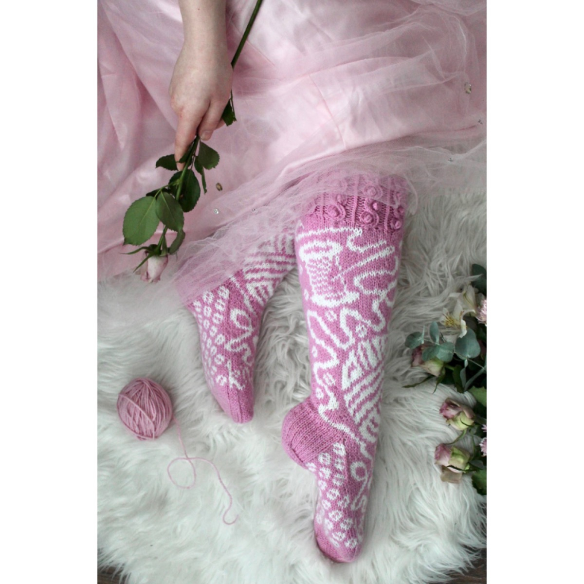 Lumoava lanka kirjoneulesukat ohje, FIN