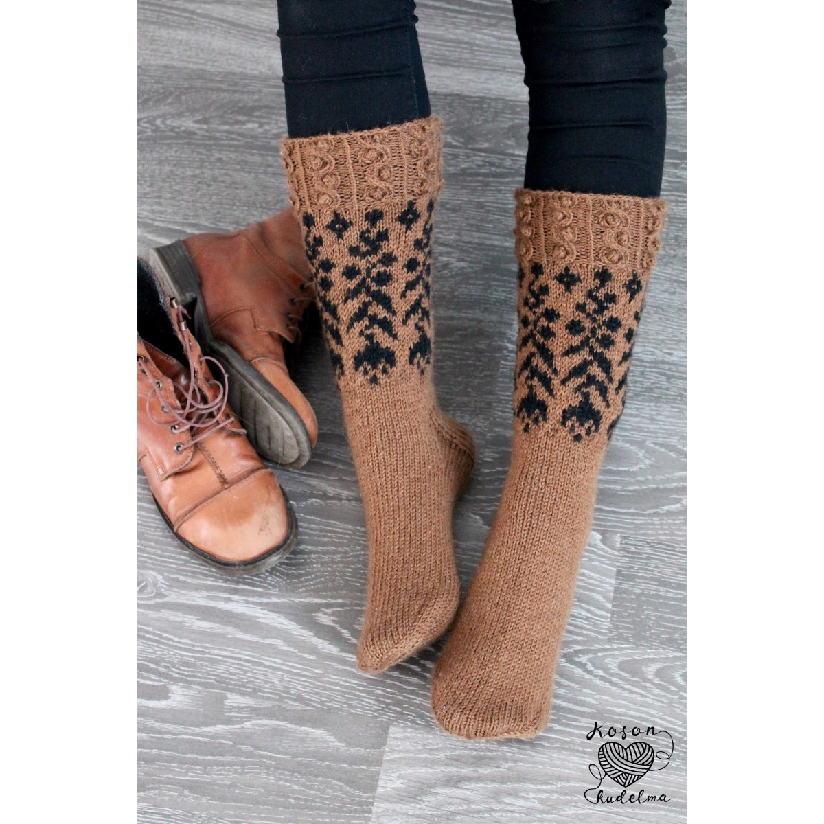 Ulpukka kirjoneulesukat ohje, FIN
