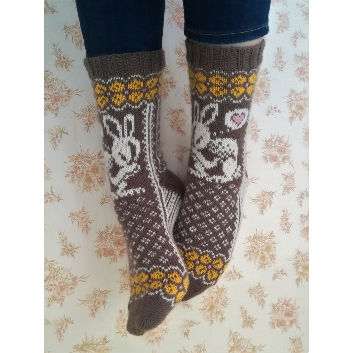 The Bunny in Love pattern incorporates a reinforced French heel and a round toe. The socks are knitted on five double-pointed needles from the cuff down. Included also a bonus version without the bunnies!