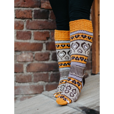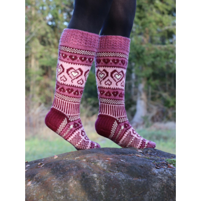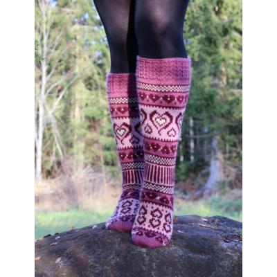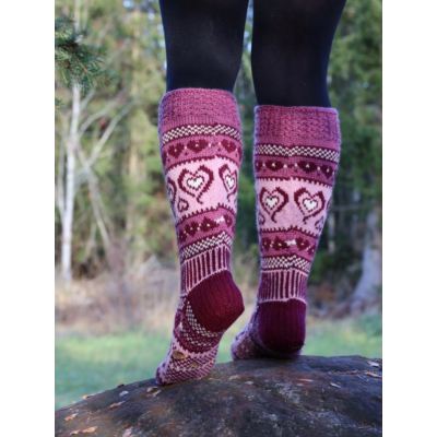 Sinikan uudet Sydänsukat on evoluutio klassikkomallista Sinikan Sydänsukat. Sukat neulotaan normaalipaksuisesta konepestävästä sukkalangasta, ja niissä on vahvistetut kantapäät. Voit valita kolmesta eri värivaihtoehdosta ja juuri sinulle sopivan jalkaterän ja pohkeen koon. Varren pituus kantapään alta on noin 40cm.