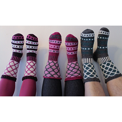 Sukissa on mukava rytmi, mikä tekee mallista miellyttävän neuloa. Sukissa käytetyt kuviot ovat yksinkertaisia ja ajattomia. Sopii mainiosti myös aloitteleville neulojille, koska langanjuoksut pysyvät lyhyinä.